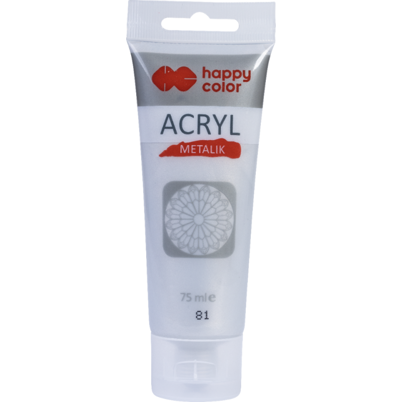 Farba akrylowa 75ml Srebrny Metalik Happy Color