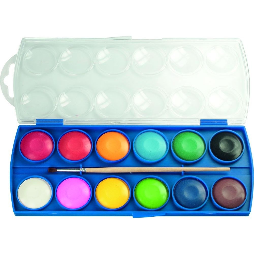 Große 12-Farben-Aquarellfarben mit einem Flamingo-Pinsel