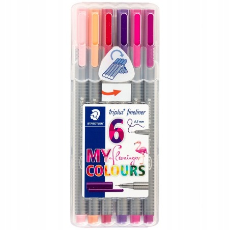Cienkopisy Triplus fineliner 6 kolorów MY flamingo Colours Staedtler etui