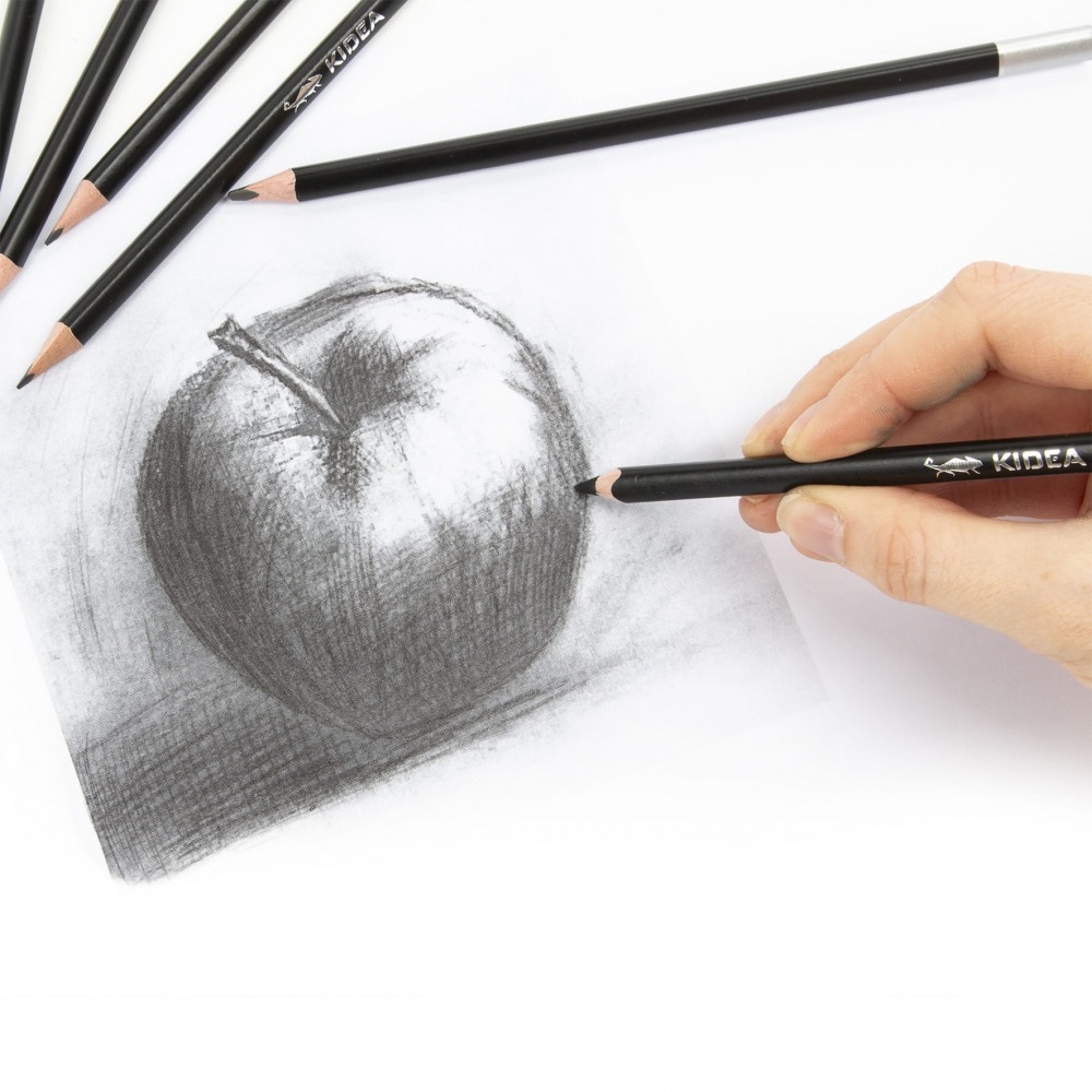 - Das Set enthält 5 Bleistifte mit einer Zeichnungshärte: 2H, H, HB, 2B, 8B und Zeichenkohle.
