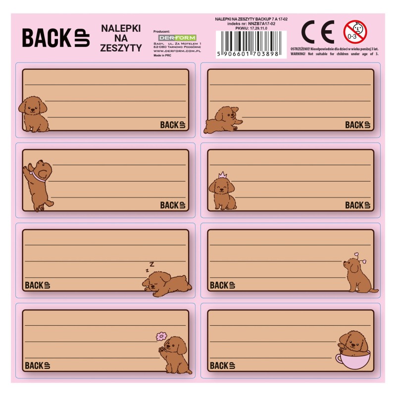 Naklejki na zeszyt brązowy Piesek Backup Derform