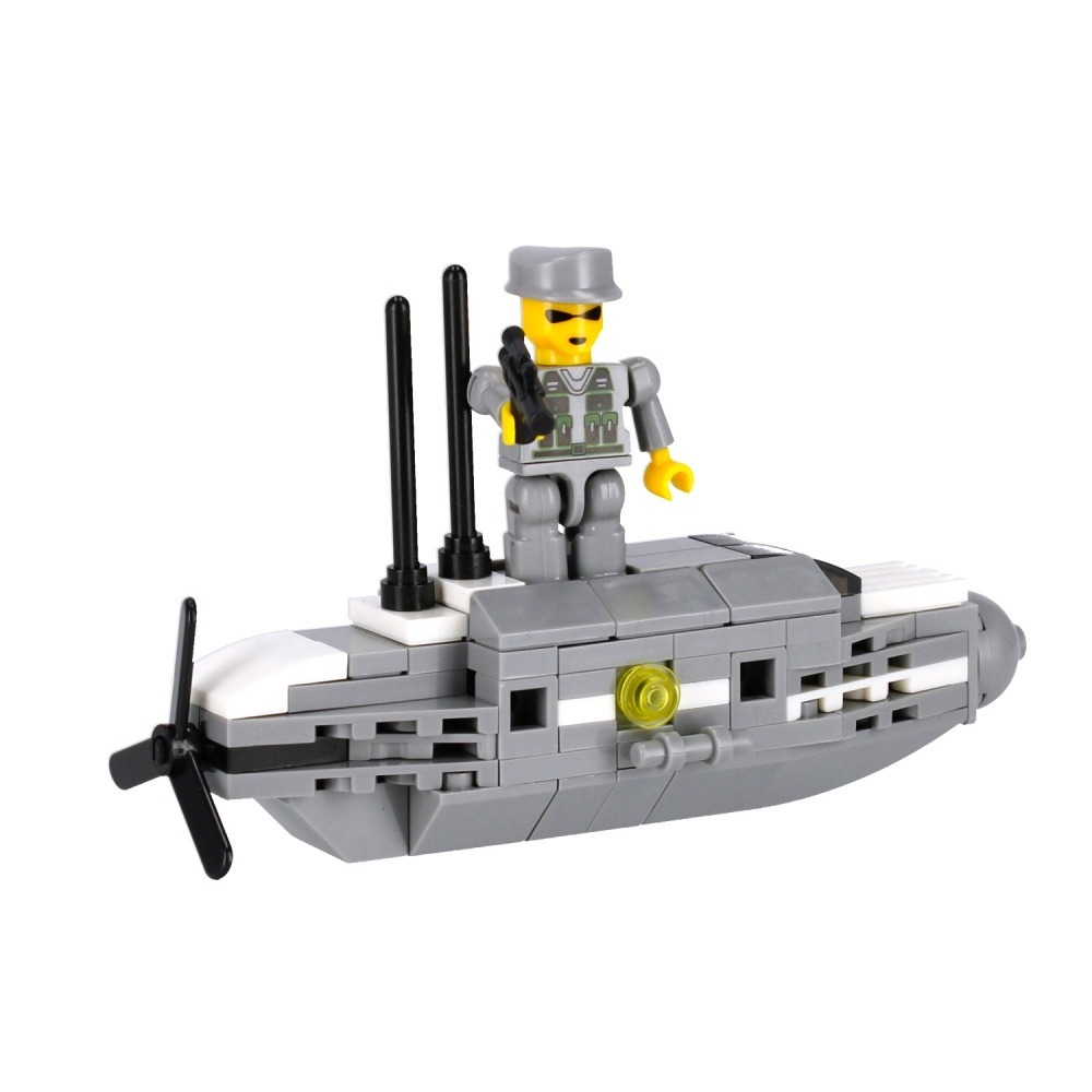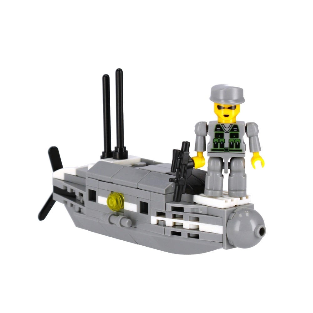 Sammle die ganze Serie von Bausteinen und baue ein großes Militärschiff aus 8 Sets von Bausteinen zusammen.