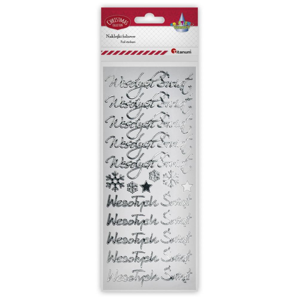 Naklejki srebrny napis Wesołych Świąt Titanum