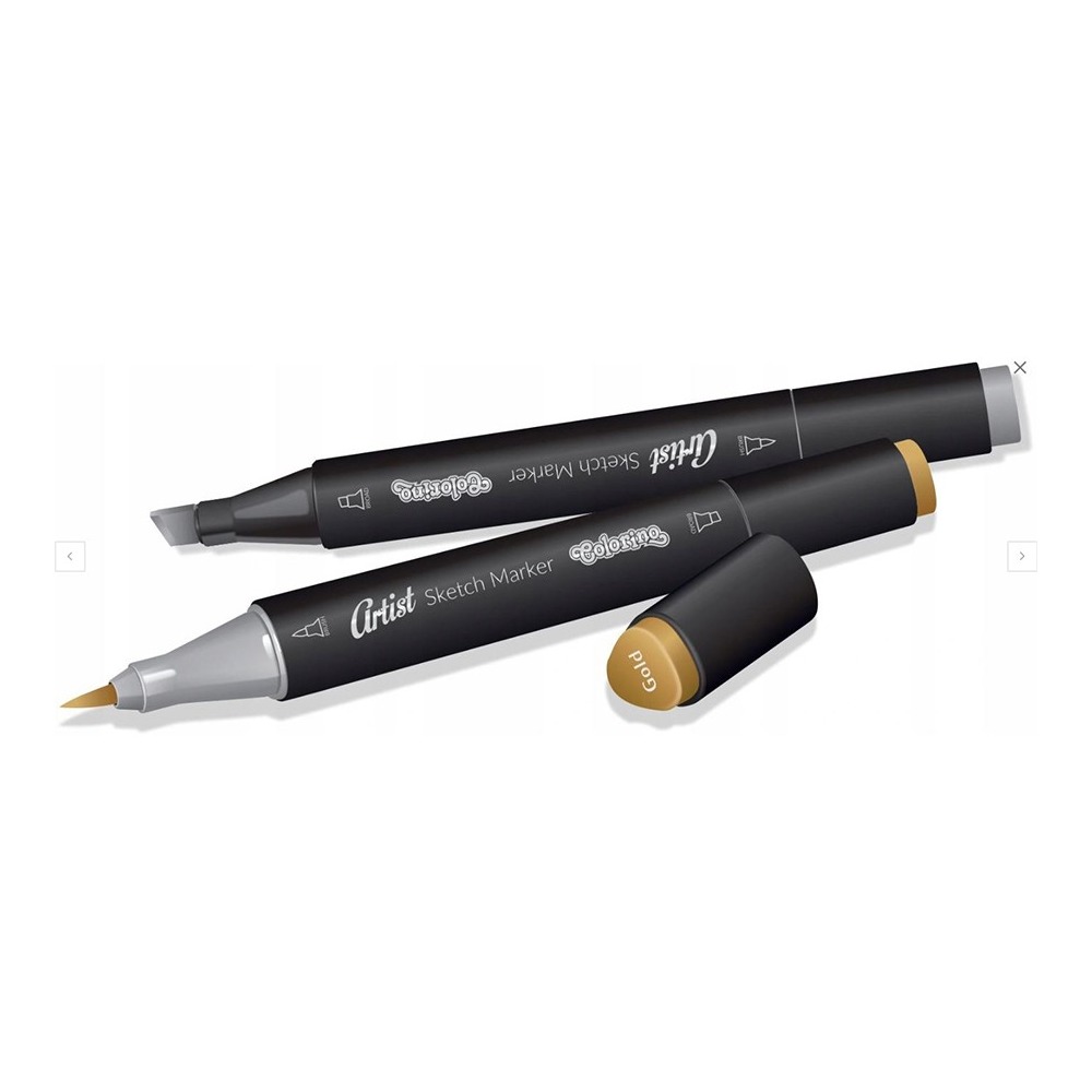 Zwei Marker in Silber und Gold, perfekt für den Abschluss künstlerischer Arbeiten. Sie haben zwei Enden: dünn und breit. Abwaschbare Marker, Tinte auf Alkoholbasis.