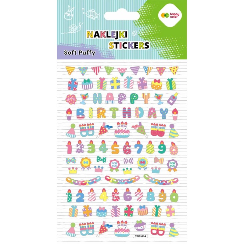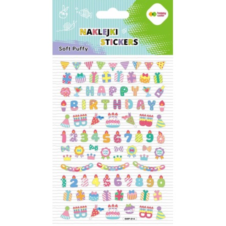Naklejki dekoracyjne Soft Puffy 3D Happy Birthday Urodziny Happy Color