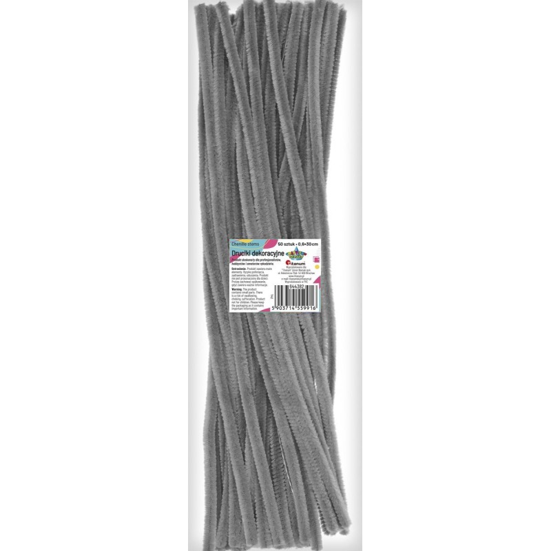 Druciki dekoracyjne wyciory szare 0,6x30 cm 50 sztuk Titanum