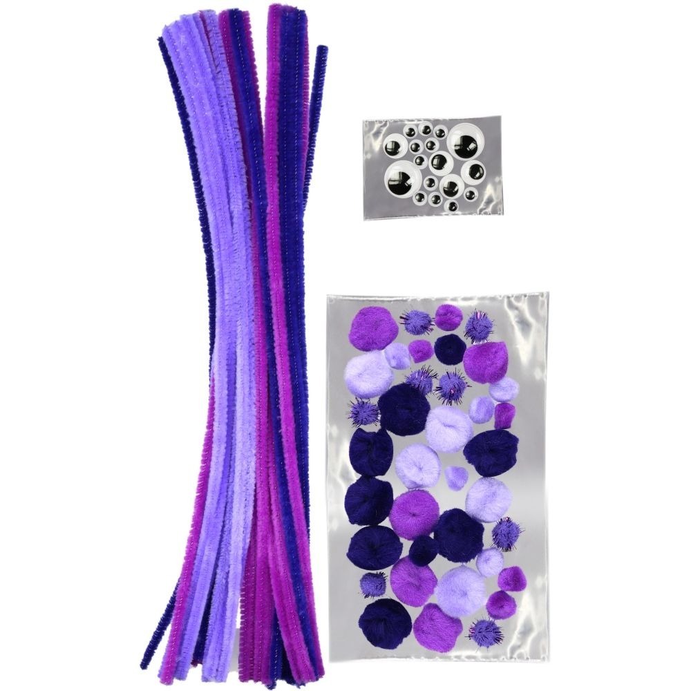 Dekoratives Set aus Drähten, Pompons, Augen, lila Titanum