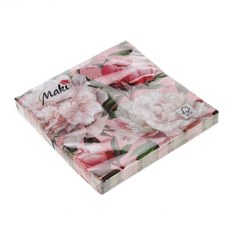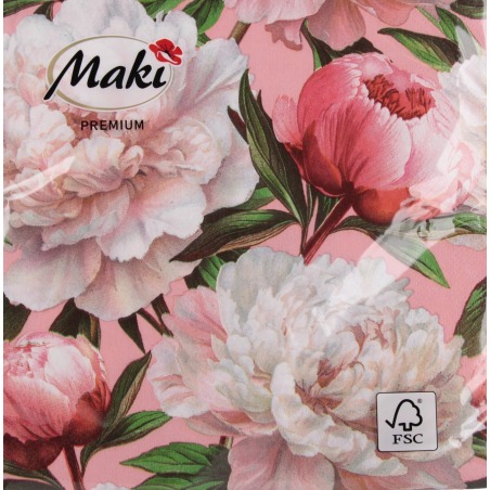 Serwetki papierowe kwiaty Piwonie 33x33 cm Pol-mak