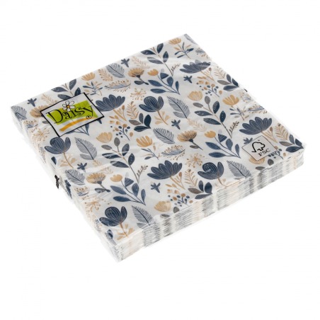 Serwetki papierowe Kwiaty niebieskie i beżowe 33x33 cm Pol-mak