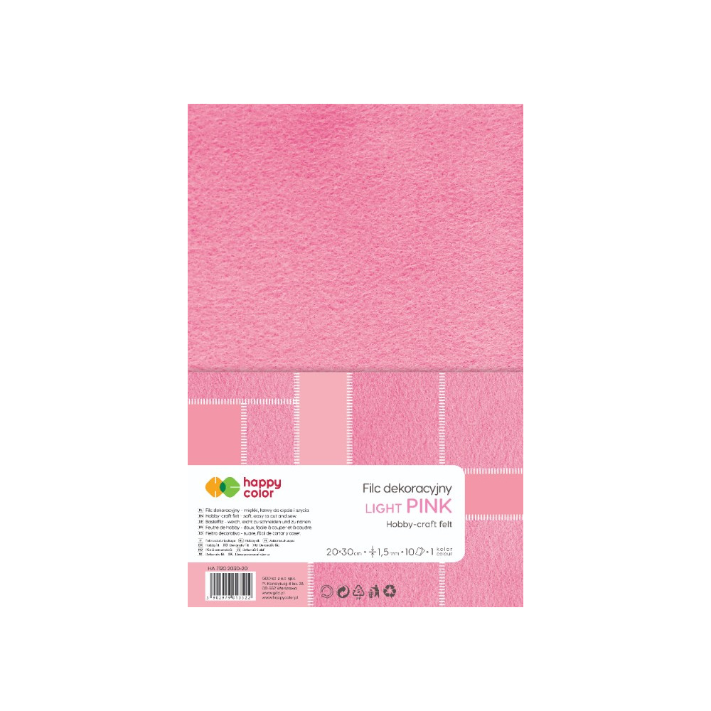 Filc dekoracyjny jasno różowy 10ark 1,5mm 20x30cm Happy Color