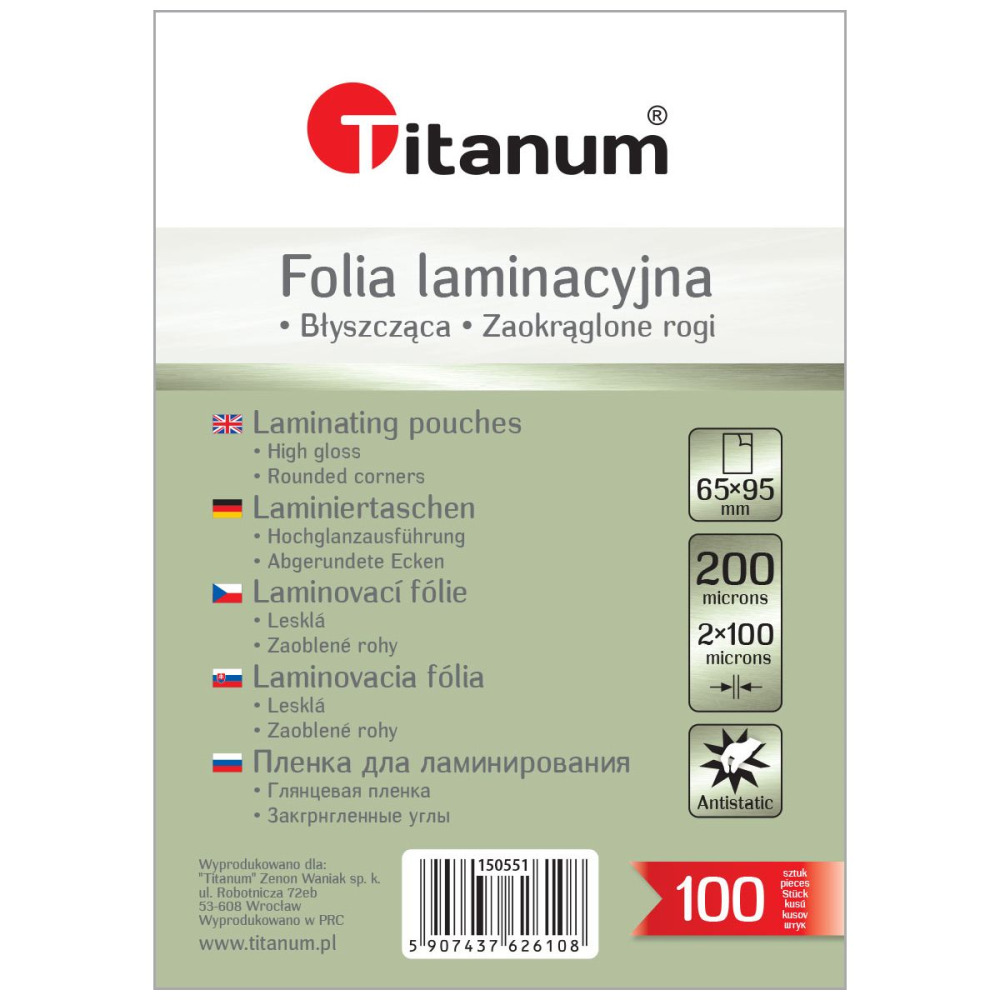 Folia do laminowania 65x95mm 100 sztuk 100 mic Titanum