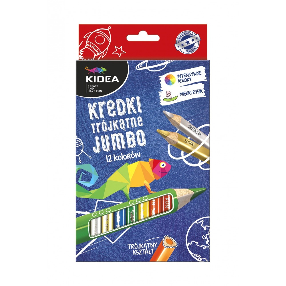 • JUMBO Buntstifte in 12 Farben haben eine ergonomische, dreieckige Form, die in einen kleinen Griff passt.