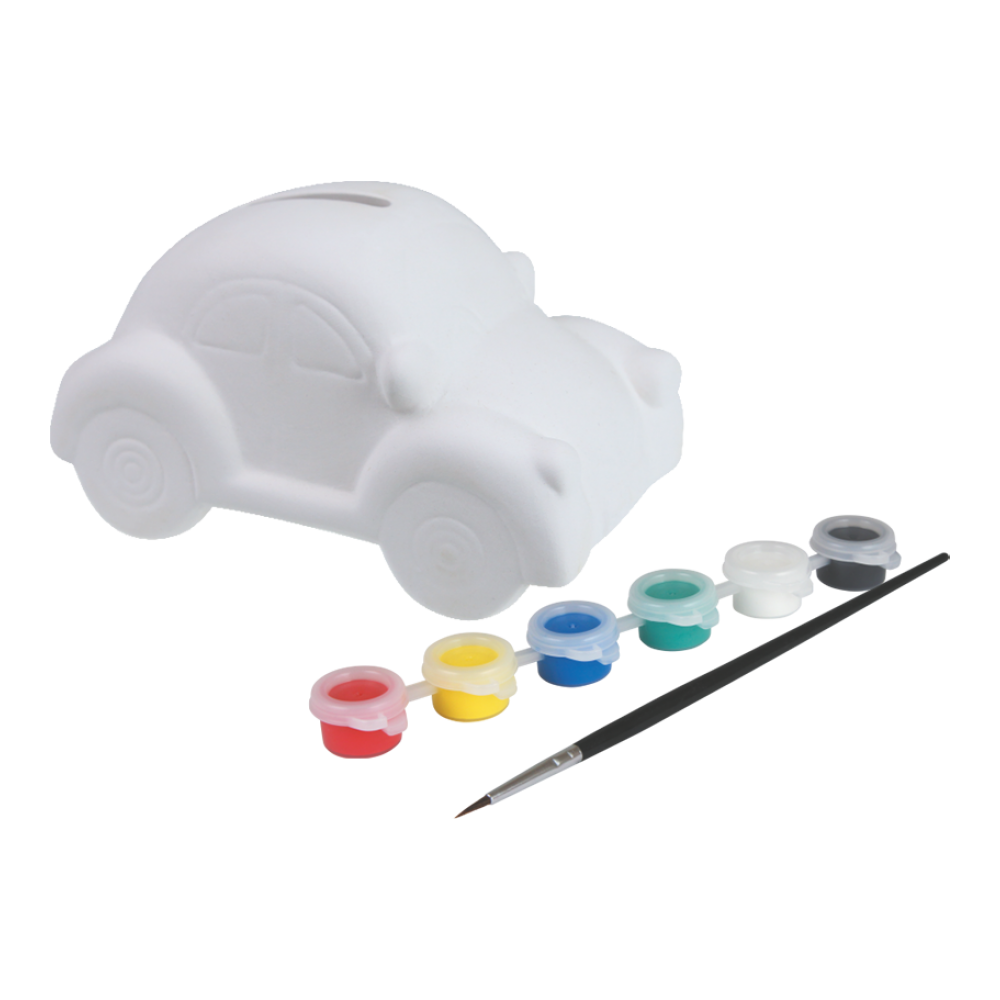 Sparschwein aus Keramik mit Farben. Erstellen Sie eine originelle und einzigartige Dekoration. Zeichnen Sie ein Muster mit einem Bleistift, malen Sie es und warten Sie, bis es getrocknet ist. Das Sparschwein kann zusätzlich z.B. mit Kleber und Glitzer, durch Einritzen eines Musters etc. verziert werden.