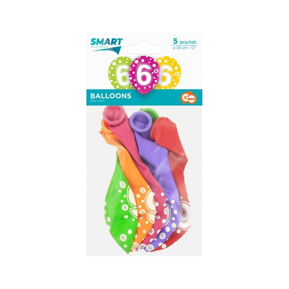 Ballons Nummer 6 Geburtstag 12" 5pcs Godan