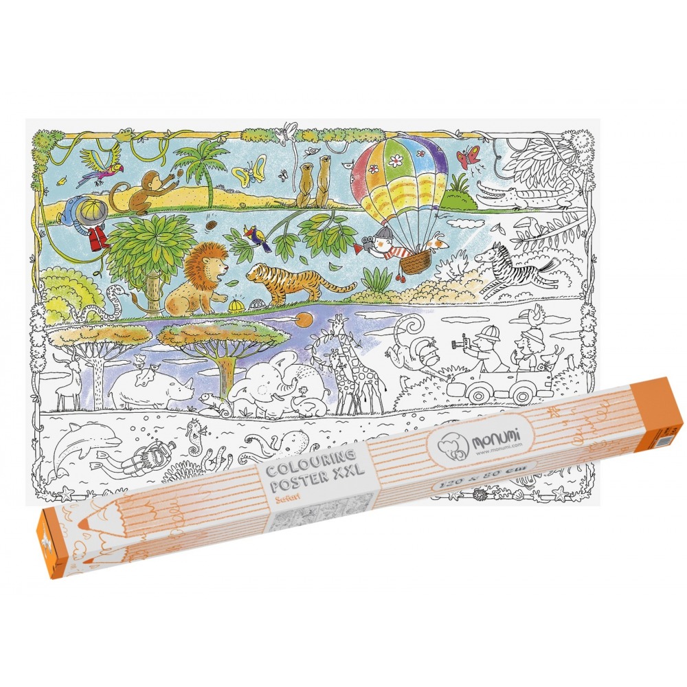 Rucksack packen, Fernglas, Kamera und Freunde mitnehmen, gemeinsam die Welt der Tierwelt erkunden. Während der Fahrt treffen Sie auf einen Elefanten mit langem Rüssel, Affen, die fröhlich auf Bäume springen, einen Löwen mit üppigem Haar und eine Schlange mit bunten Flecken. Sie müssen diese Träume nur zum Leben erwecken, sie mit Buntstiften, Filzstiften und Farben ausmalen. Das Floor XXL Malbuch ist ein stundenlanger kreativer Spaß. Malen Sie alleine, mit Eltern und Freunden. Ist das wilde Abenteuer vorbei? Lernen Sie also das Stadtleben kennen, besuchen Sie das Land des Weihnachtsmanns oder die magische Welt der Feen.