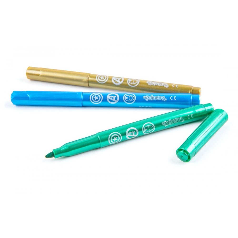 Während die größten Schurken ihren Fallen entkommen, bilden die fünf mächtigsten Helden der Welt eine Allianz zur Verbrechensbekämpfung namens The Avengers. In der Colorino Avengers-Kollektion gibt es keinen Anführer unter ihnen. Sie alle sind Marvel-Superhelden, mit denen jeder junge Mann begierig darauf sein möchte, befreundet zu sein. Captain America, Iron Man, Thor, Hulk, Black Widow sind Charaktere, die auf allen Verpackungen dieser Serie zu sehen sind. Jedes Produkt von Colorino Avengers ist mit Symbolen ihrer Superkräfte gekennzeichnet, um das Böse zu bekämpfen.