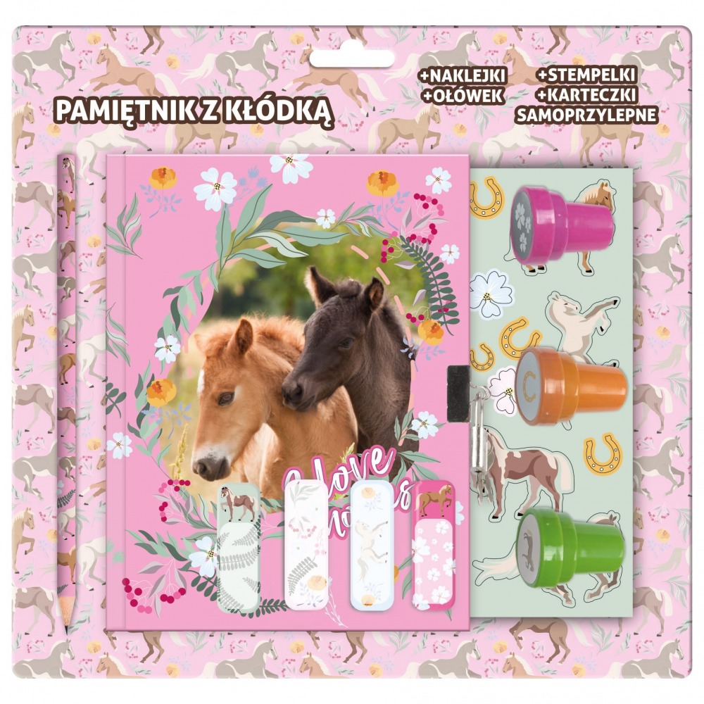 Vorhängeschloss-Tagebuch + Briefmarken und Zubehör Pferde Derform