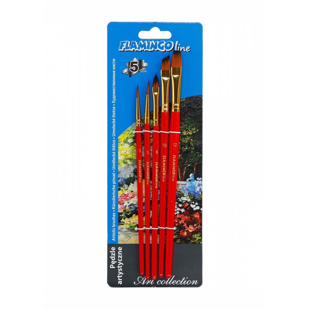 Künstlerpinsel mit Synthetikhaar 5 Stück Flamingo Line