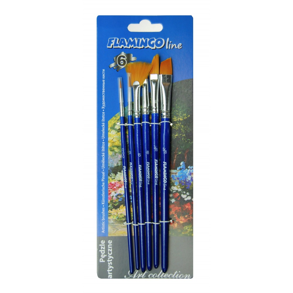 Kunstpinsel mit Synthetikborsten, marineblaue Griffe 6 Stück Flamingo Line