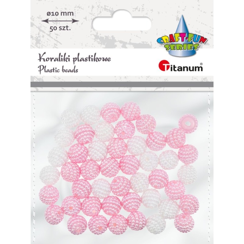 Koraliki plastikowe różowe i białe 10 mm 50 sztuk Titanum