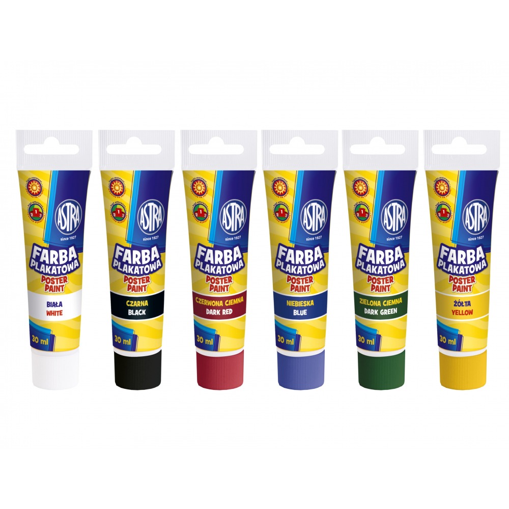 Plakatmalfarben in Tuben 6 Farben x 30 ml Astra