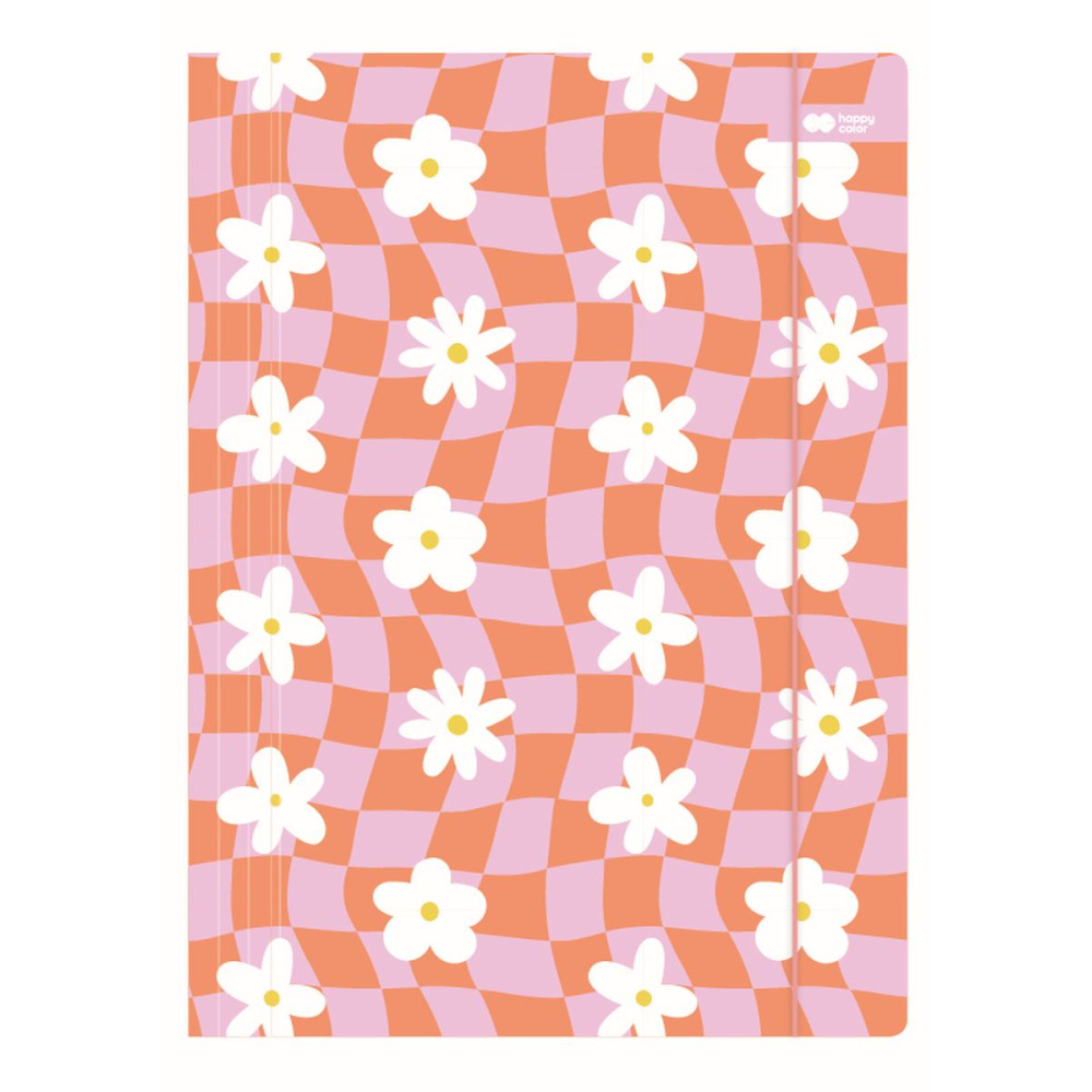 Teczka z gumką A4 kratka różowo-pomarańczowa z kwiatkami Happy Color