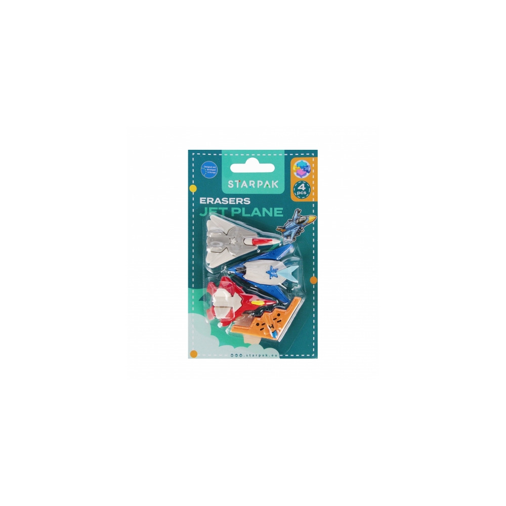 Gumki do mazania 4 sztuki blister samoloty odrzutowce Starpak