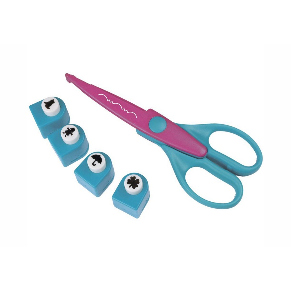 Ein kreatives Set bestehend aus Schere und Locher mit dekorativen Motiven.