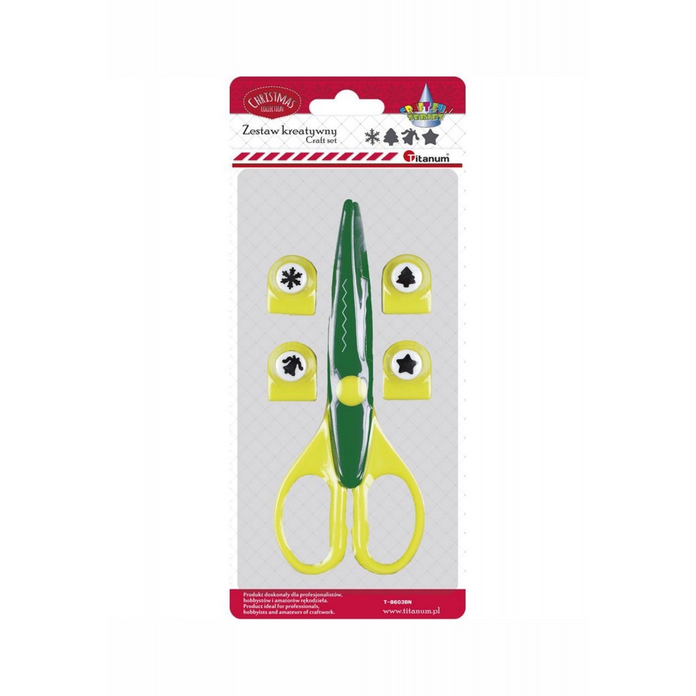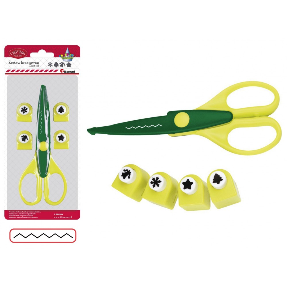 Ein kreatives Set bestehend aus Schere und Locher mit weihnachtlichen Motiven.