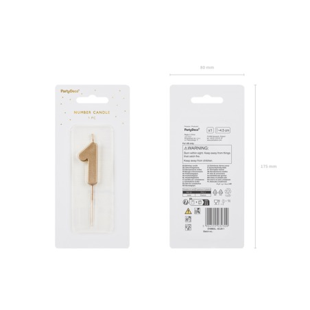 Świeczka urodzinowa Cyferka 1, 4.5 cm, złoty 1 op. / 1 szt.