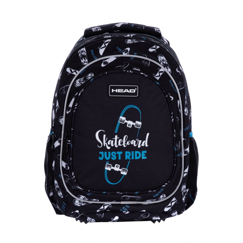 The three-compartment Astrabag backpack was created with young skateboarding fans in mind. It features a large skateboard graphic on its front with the words "Skateboard Just Ride". The black backpack also features a mini skateboard motif. The Head backpack has three functional compartments equipped with a practical pocket and an organizer for small items. It uses the latest Ergo Back technology to minimize pressure on the shoulders and spine and make the child feel comfortable.