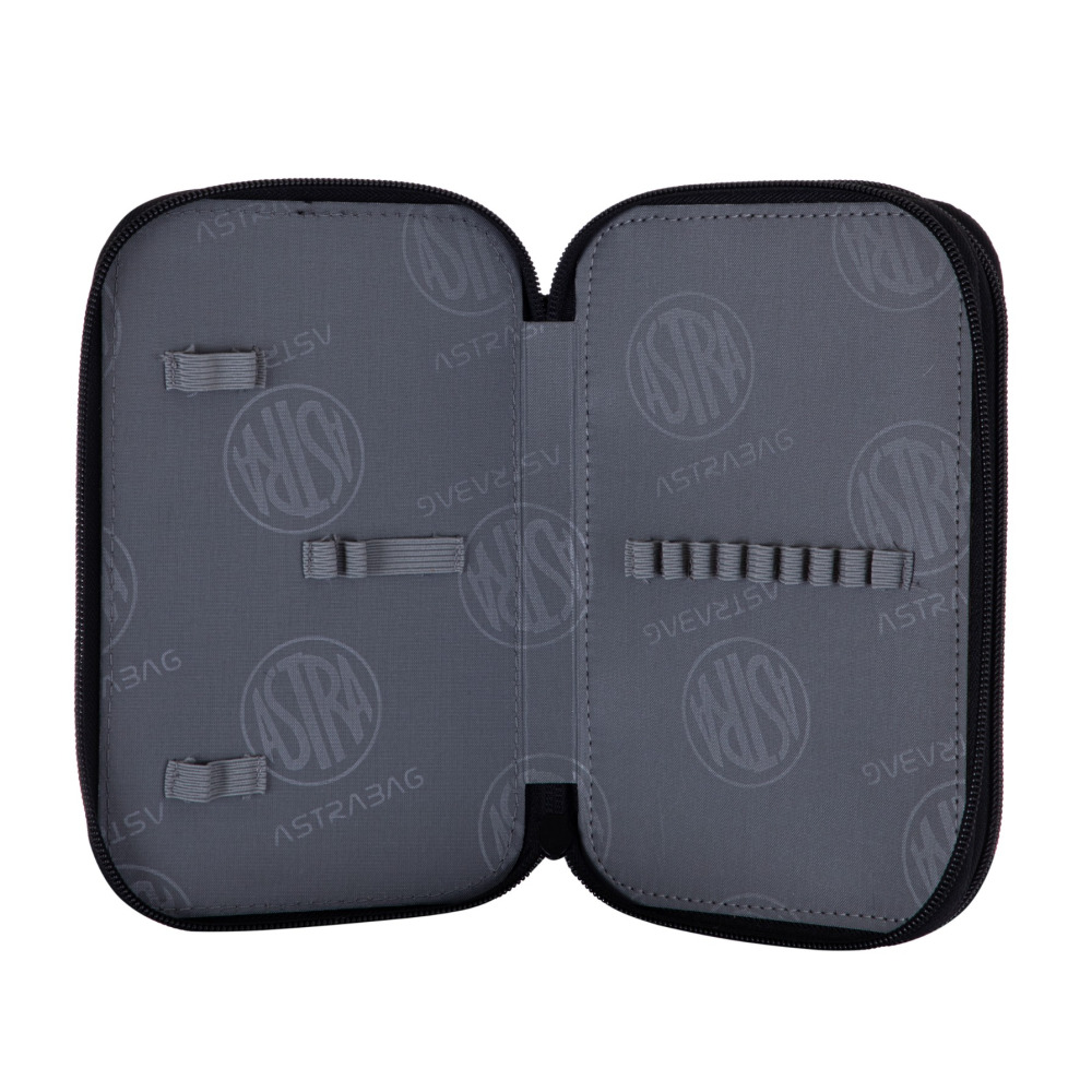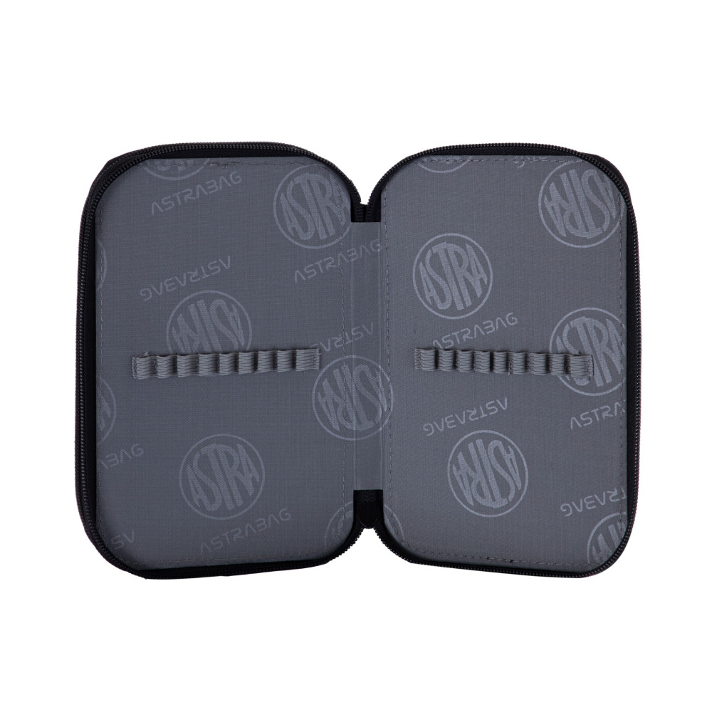 The two-compartment pencil case Astrabag from the Play Game series was designed for young fans of computer games. The green pixelated graphic motif referring to the most popular modern games will steal the heart of any student. The Astrabag pencil case does not have any equipment. However, thanks to its capacious two compartments, it will accommodate necessary utensils including crayons, markers, pencils, pens and rulers.