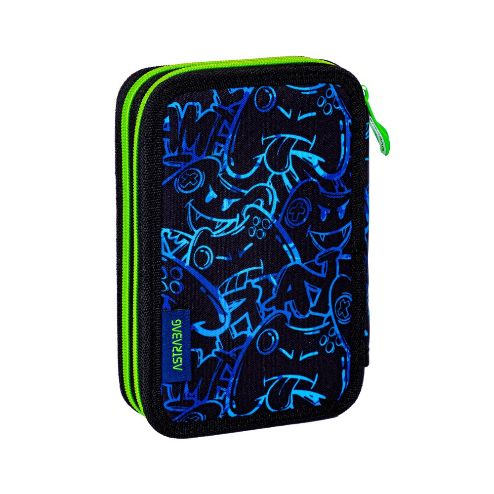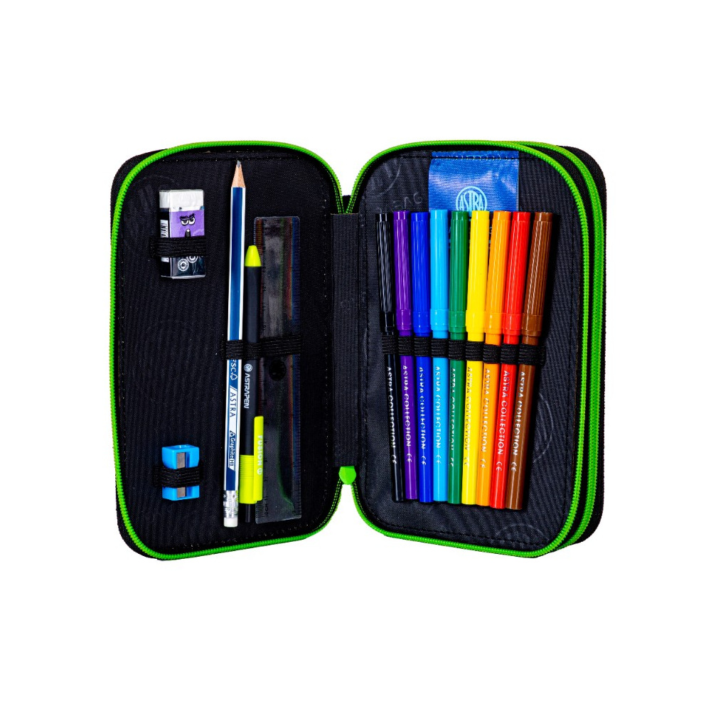 The two-compartment pencil case Astrabag Teddy Panda was designed for all panda lovers. On its front there is a plush muzzle of this cute creature, which is cuddly to the touch. In addition, the mint color scheme interspersed with pink and icons of various animals will steal the heart of any girl. The Astrabag pencil case has two capacious compartments. In addition, it is fully equipped with the necessary stationery and art supplies. Thanks to it every child will start a new school year with pleasure. The pencil case will be perfect for grades I-IV.