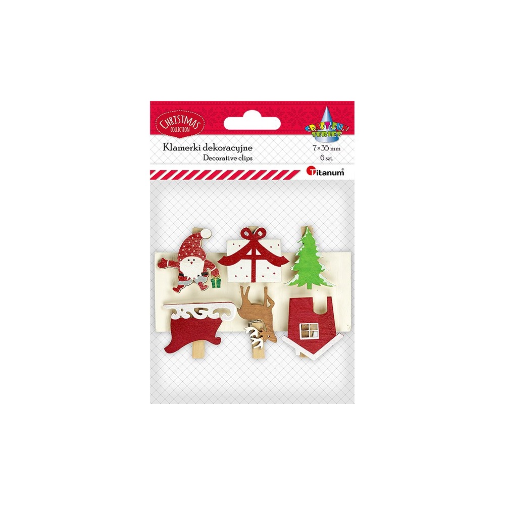 • Wooden clips with natural decor 7x35mm mix decors: house, deer, sleigh, Christmas tree, gift, gnome