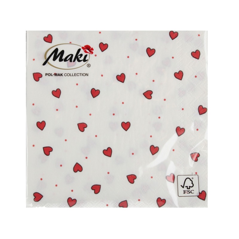 Serwetki papierowe białe w małe serca 25x25 cm Pol-mak
