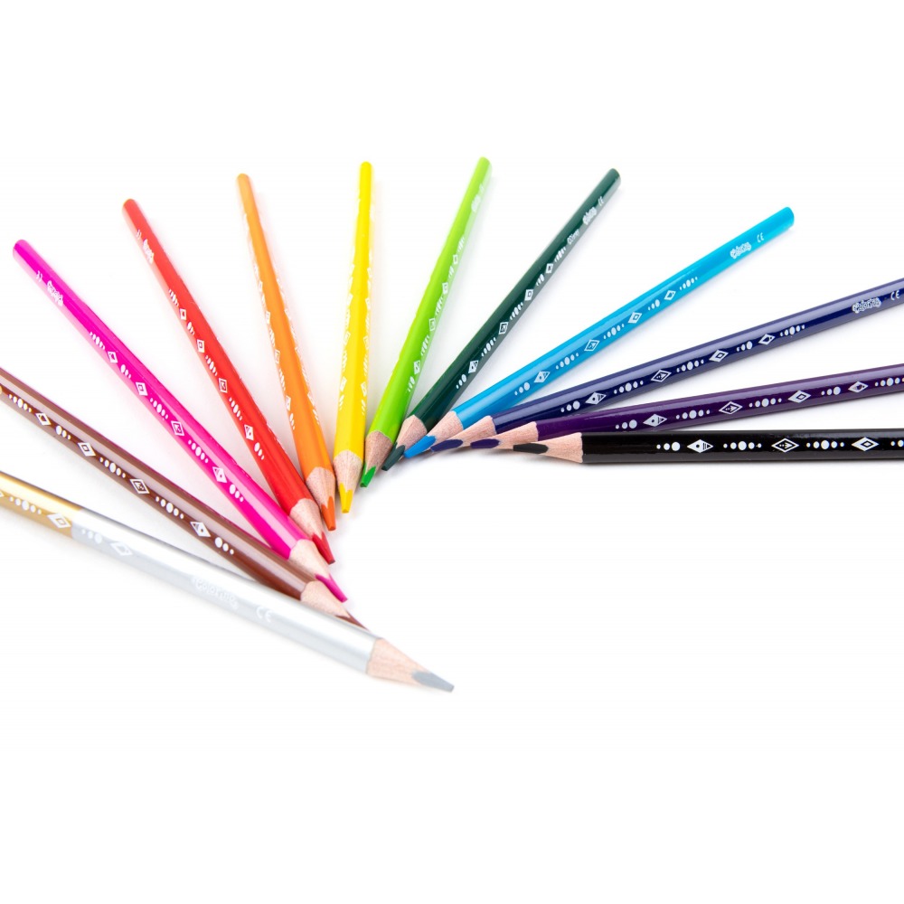 11 single-colored crayons + 1 double-sided gold / silver crayon