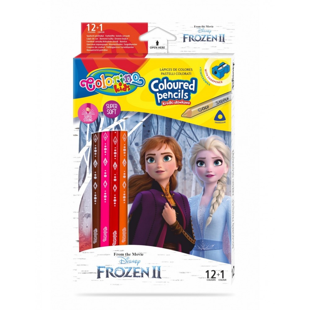 Colorino Frozen pencils in a set of 13 colors, including gold and silver.