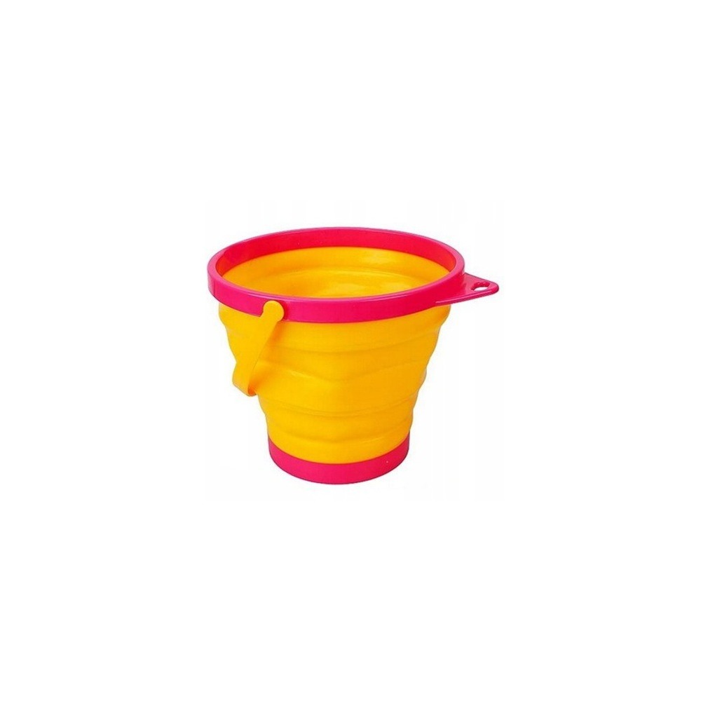 Silicone folding round sand bucket + shovel Artyk pink-orange