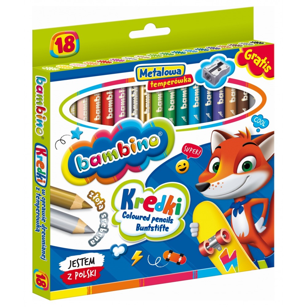 High-quality crayons made of kaolin clay in a wooden frame. They are characterized by exceptionally intense and saturated colors. They cover perfectly, they are perfect for drawing, filling large surfaces and making soft transitions between colors. The crayons are thick and well-balanced, which makes them ideally suited to a child's small hand. They are produced in Poland, in accordance with the Directive of the European Parliament and of the Council on the safety of toys and the ordinance of the Ministry of Economy on essential requirements for toys, which guarantees the safety of Bambino crayons.
