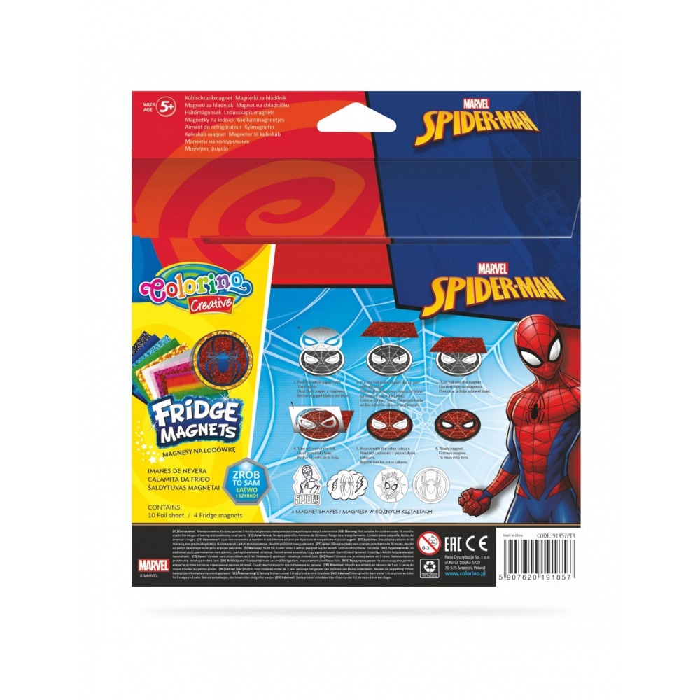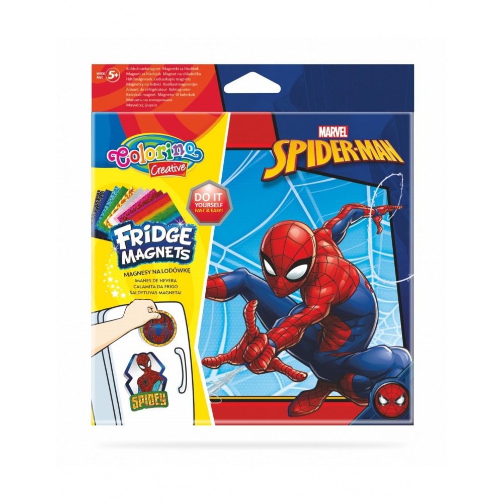 Colorino Spiderman fridge magnets are a guarantee of unforgettable fun. Children love to create, and when your work can be displayed in the busiest place in the house, it is already a complete success. The set includes four different patterns of magnets prepared for colored sticking. It is enough to remove the protective paper stuck to the magnet and put a color selected from among the enclosed squares on the place with a non-foiled side. Lots of different possibilities and combinations of sticking. There are two different sets of magnet figures in each series.