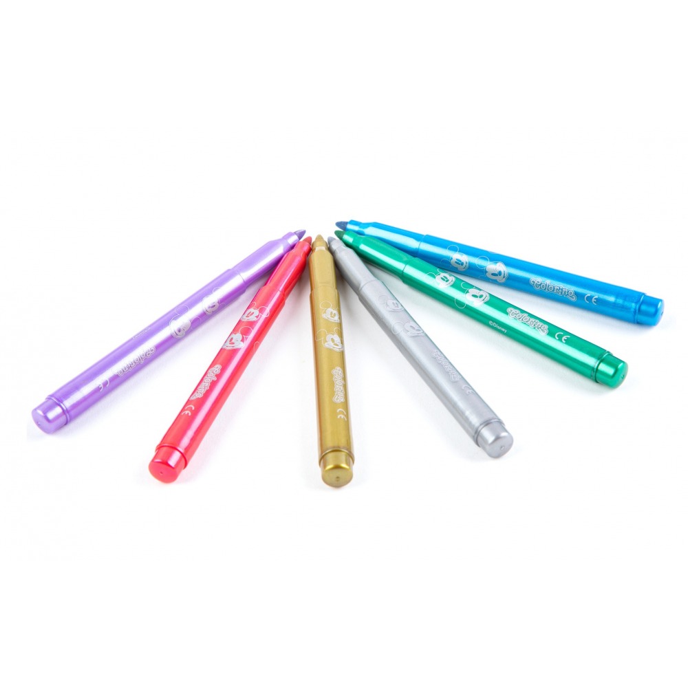 The Colorino Disney series are products that were created in response to your needs. We prove that even the most famous heroes can appear in the world of perfect quality and refined details. All you need to do is choose your favorite character and complete all the necessary art accessories with it: triangular pencils in a set of 13 pencils with a sharpener, double-sided triangular pencils a set of 24 colors with a sharpener, Jumbo pencils in a package of 13 colors, including gold and silver, poster paints, plasticine, felt-tip pens, double-sided markers, tempera paints in tubes, twisted gel crayons in a stick, triangular oil pastels, metallic markers and fridge magnets. Among the heroes of Disney in Colorino you will meet: Mickey Mouse, Minnie Mouse, Anna and Elsa from Frozen II and the almighty characters of Star Wars. For superheroes, we have thematically prepared series created in cooperation between Colorino and Marvel: Avengers and Spiderman.