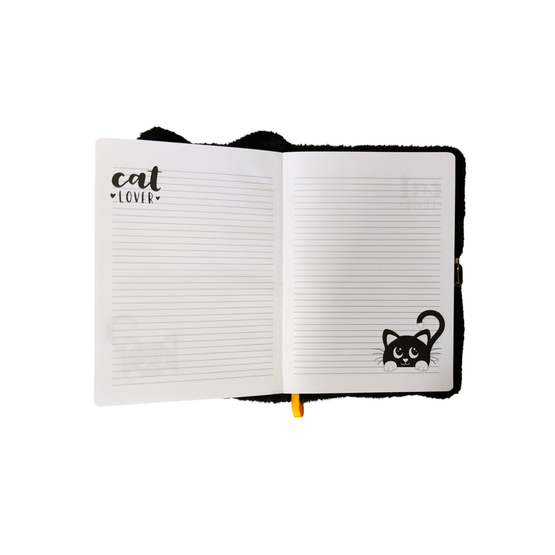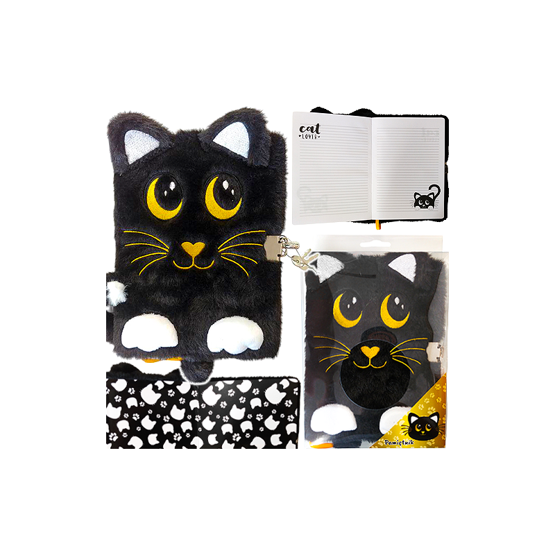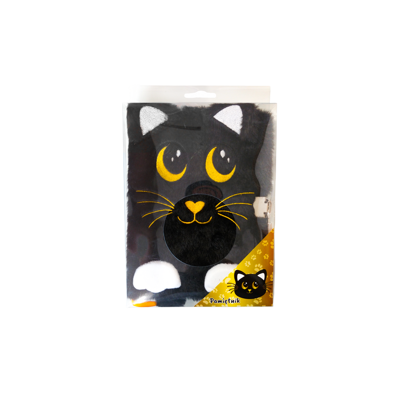 Pamiętnik z kłódką włochacz A5 96k Night Cat Czarny Kot Majewski