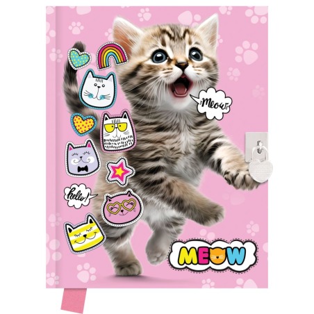 Pamiętnik z kłódką 80k 14x18cm Kotek Meow