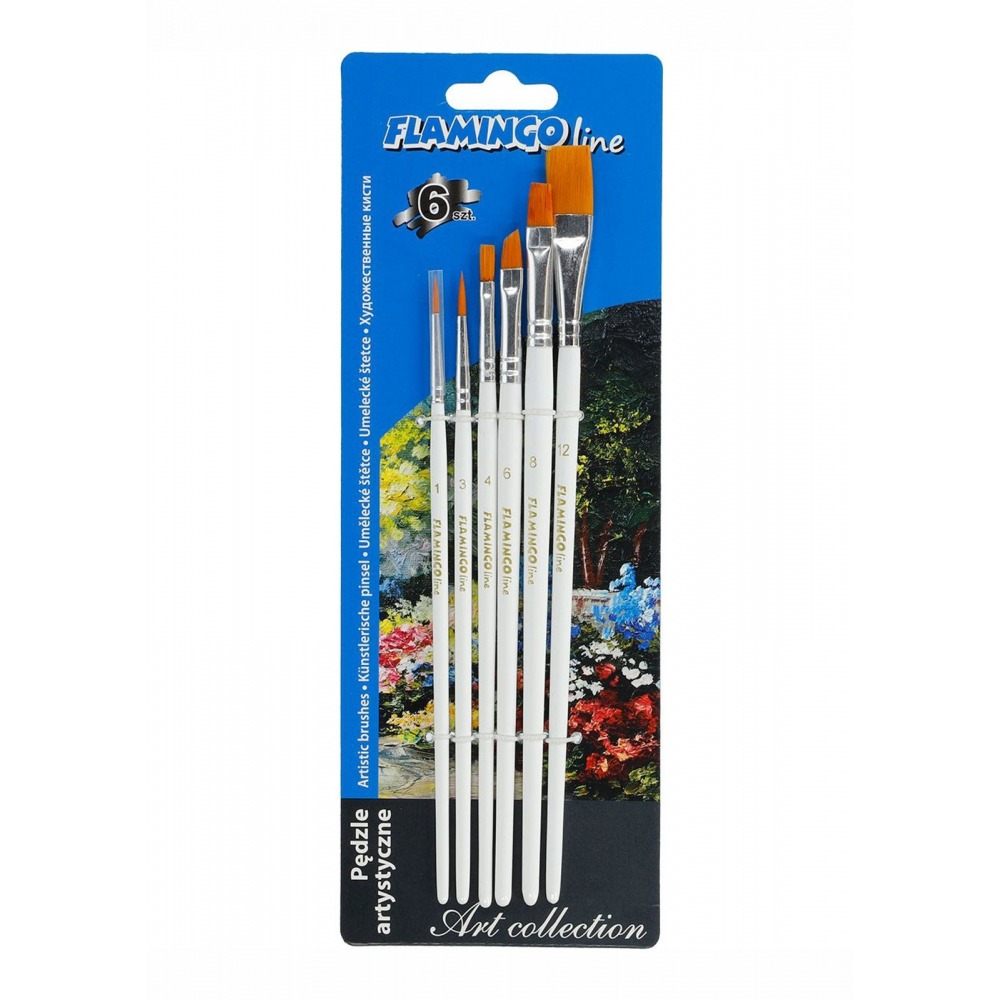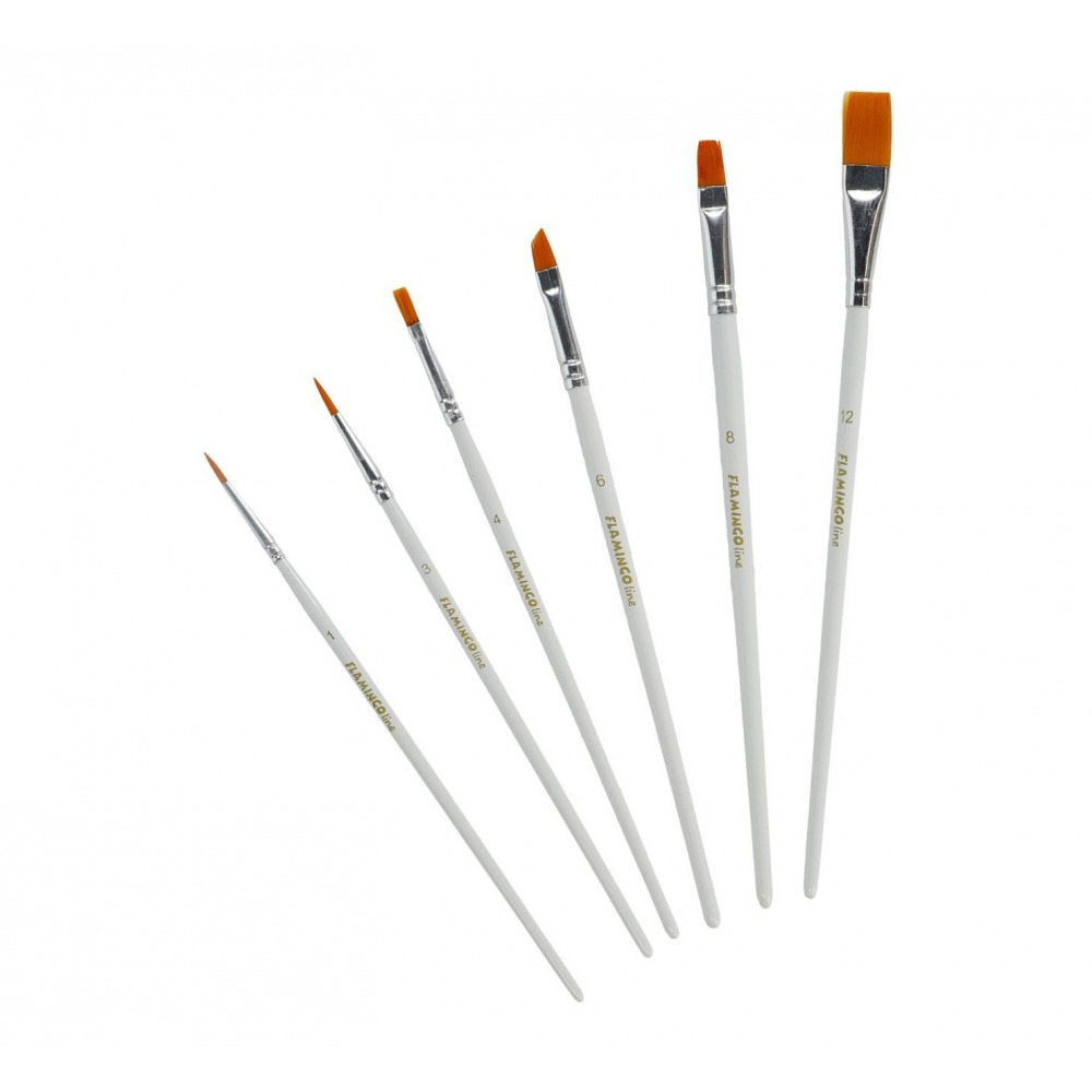 Art brushes with synthetic hair, white handles 6 pcs. Flamingo Line