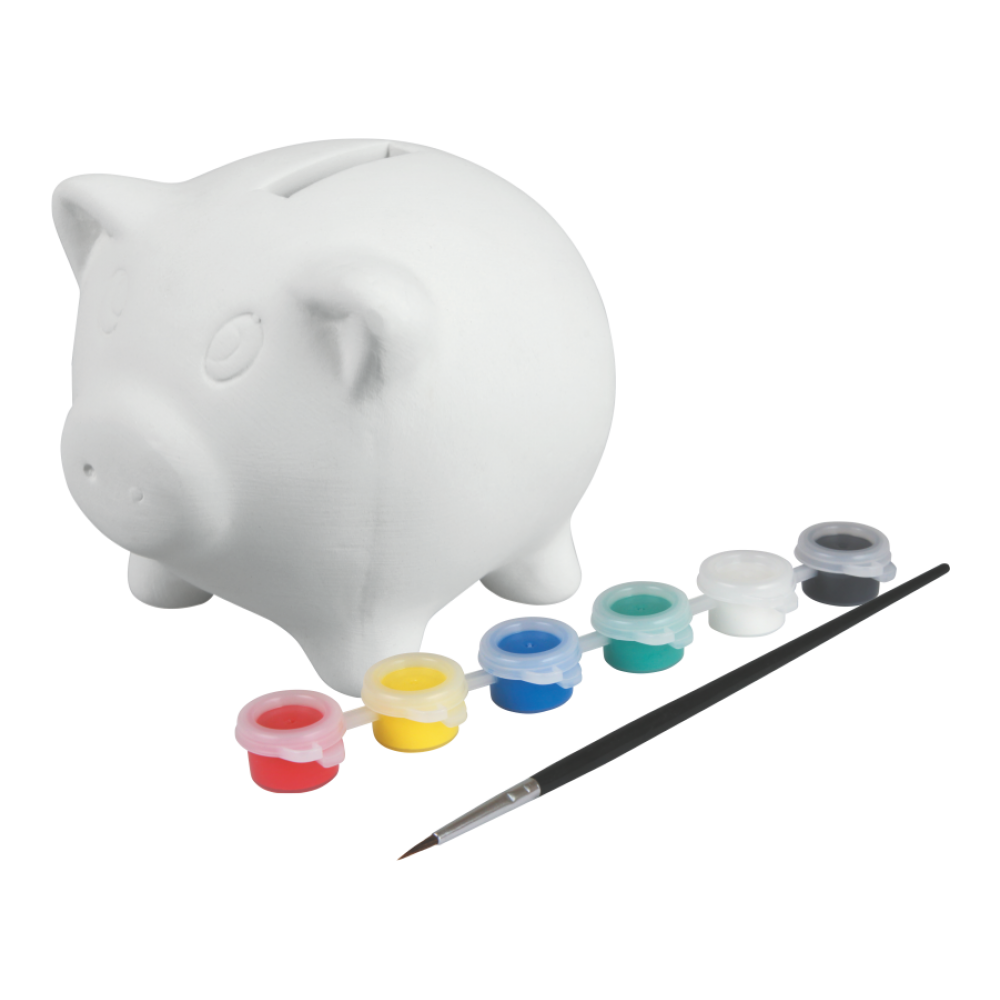Ceramic piggy bank with paints. Create an original and unique decoration. Draw a pattern with a pencil, paint it and wait for it to dry. The piggy bank can be additionally decorated with, for example, glue and glitter, by scratching a pattern, etc.