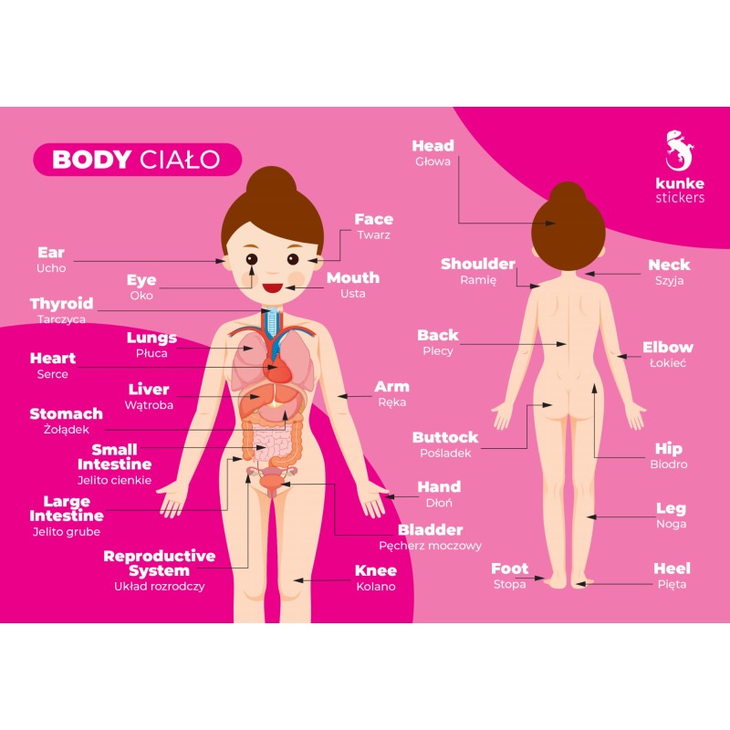 Naklejki elektrostatyczne Fiszki do języka angielskiego Body/ciało Kunke