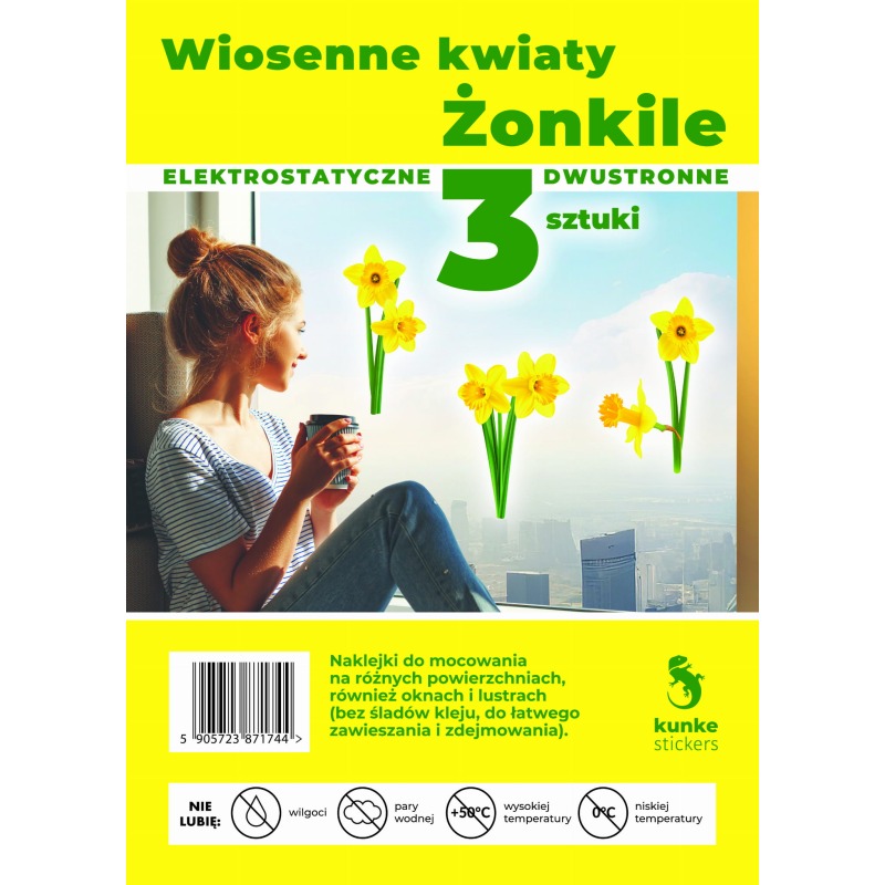 Naklejki elektrostatyczne Wiosenne kwiatki Żonkile 3 szt Kunke