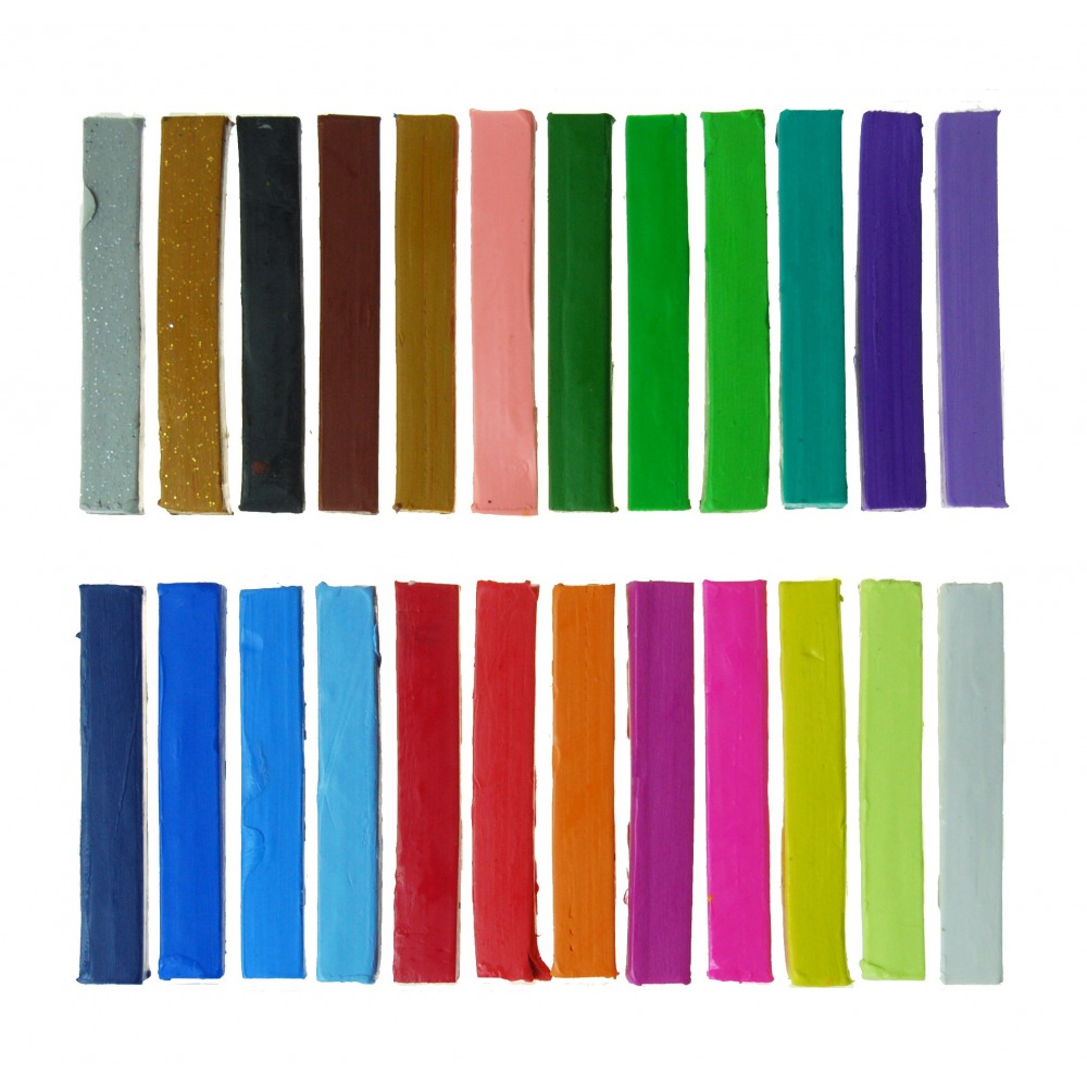 • Set of 24 colors (includes glitter gold and silver plasticine)