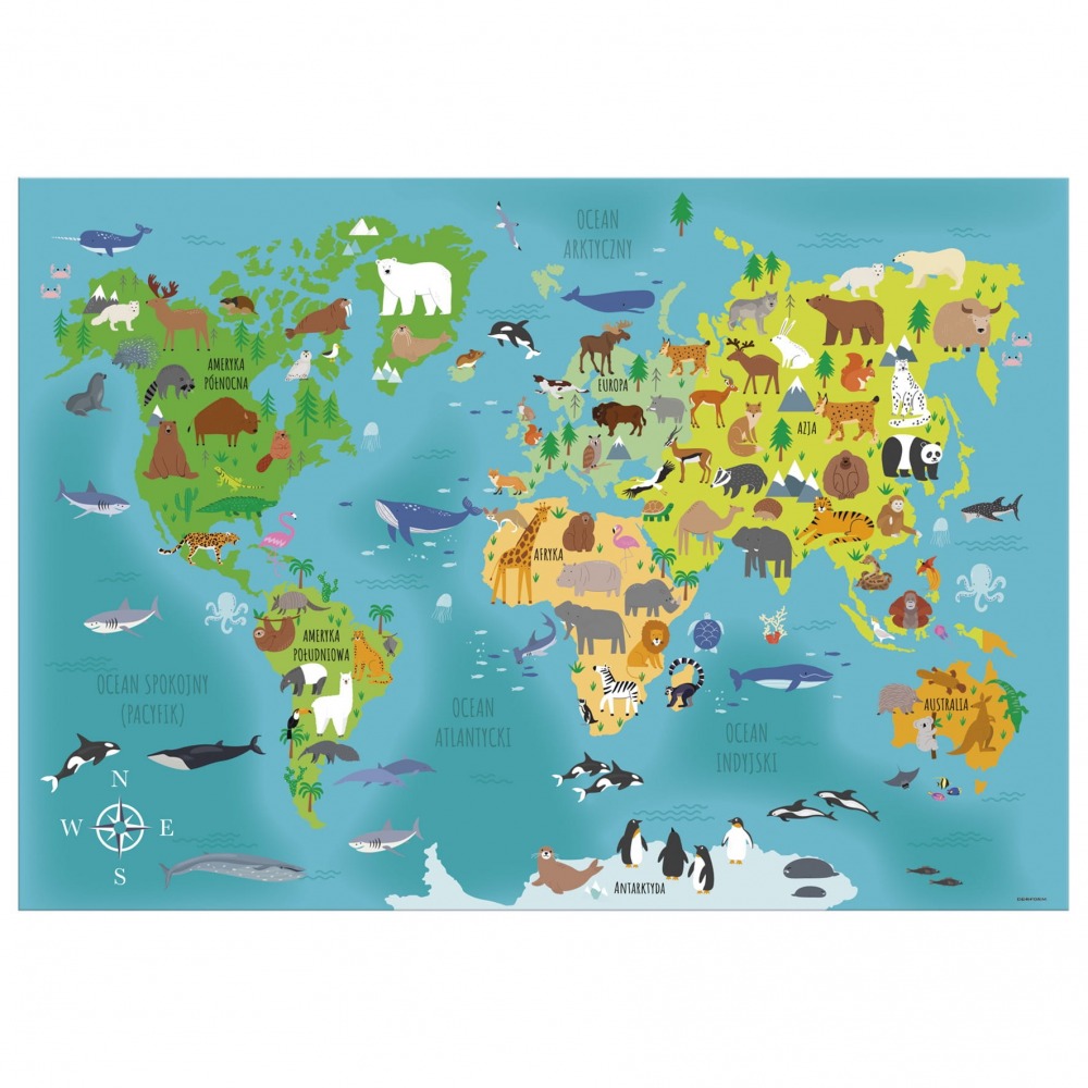 School desk pad double-sided World Map Animals Derform