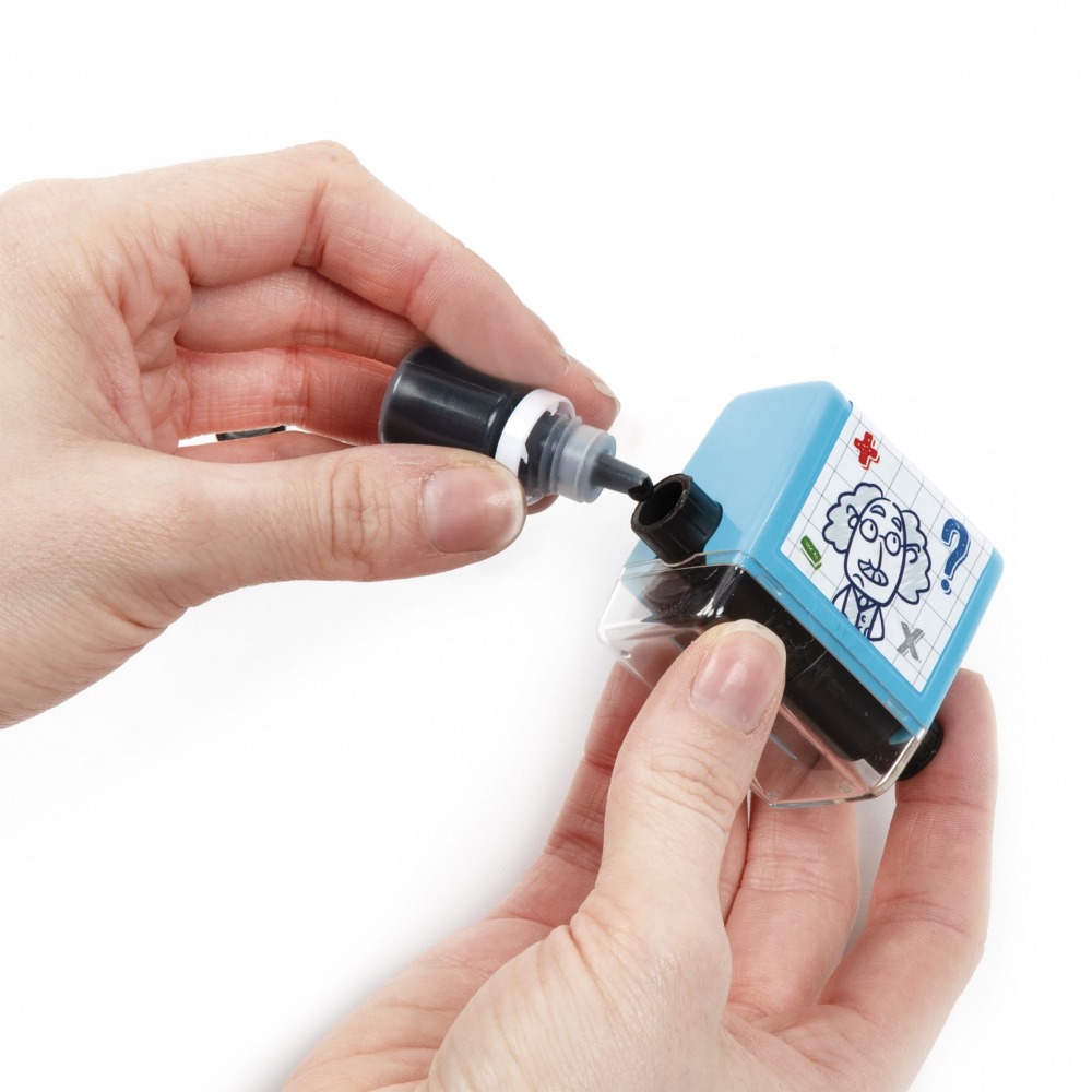 • This unique roller stamp allows you to create as many as 100 different combinations of math activities - just rearrange the numbers with the dial. Slide it over a piece of paper and the tasks print themselves.